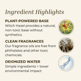 Aqua (Water), Hamamelis Virginiana (Witch Hazel), Polysorbate 20, Fragrance.