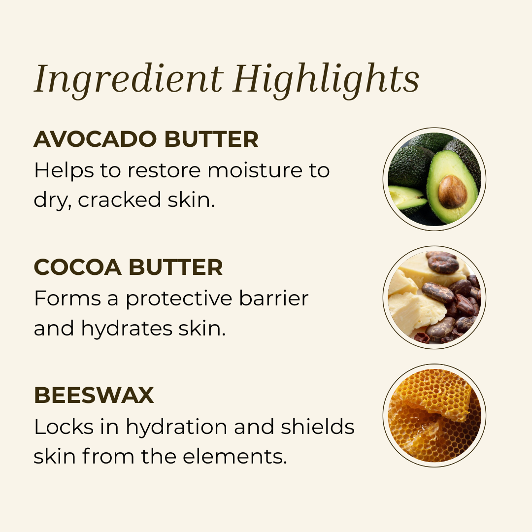 Soothe hardworking hands. Our Gardening Hand Balm is packed with rich Avocado Butter and protective oils to restore moisture, soothe rough patches, and shield skin from the elements. Whether you’ve been digging in the dirt or tending to blooms, it leaves hands soft, nourished, and ready for your next garden day.